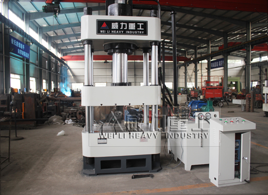 液壓機(jī)由主機(jī)及控制機(jī)構(gòu)兩大部分組成。液壓機(jī)主機(jī)部分包括機(jī)身、主缸、頂出缸及充液裝置等。動(dòng)力機(jī)構(gòu)由油箱、高壓泵、低壓控制系統(tǒng)、電動(dòng)機(jī)及各種壓力閥和方向閥等組成。動(dòng)力機(jī)構(gòu)在電氣裝置的控制下,通過泵和油缸及各種液壓閥實(shí)現(xiàn)能量的轉(zhuǎn)換,調(diào)節(jié)和輸送,完成各種工藝動(dòng)作的循環(huán)。液壓缸:將液壓能轉(zhuǎn)化為機(jī)械能液壓傳動(dòng)是利用液體壓力來傳遞動(dòng)力和進(jìn)行控制的一種傳動(dòng)方式。液壓裝置是由液壓泵,液壓缸,液壓控制閥和液壓輔助元件。山東威力重工機(jī)床有限公司根據(jù)客戶需求定制非標(biāo)液壓機(jī)。如下圖參考