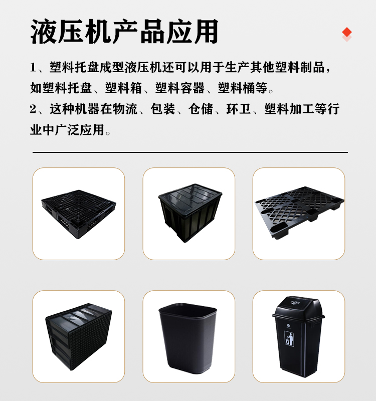 塑料托盤成型液壓機在物流、倉儲、包裝等行業(yè)中有著廣泛的應用。塑料托盤是一種常用的物流包裝工具,可以用于存放、運輸和堆放貨物,提高物流效率,降低勞動強度。塑料托盤成型液壓機生產(chǎn)的塑料托盤具有質(zhì)量穩(wěn)定、耐用、環(huán)保等優(yōu)點,能夠滿足不同行業(yè)的需求。在電子、汽車、食品、化工等行業(yè)中,塑料托盤都是必不可少的物流包裝工具,因此塑料托盤成型液壓機在這些行業(yè)中具有重要的應用價值。
