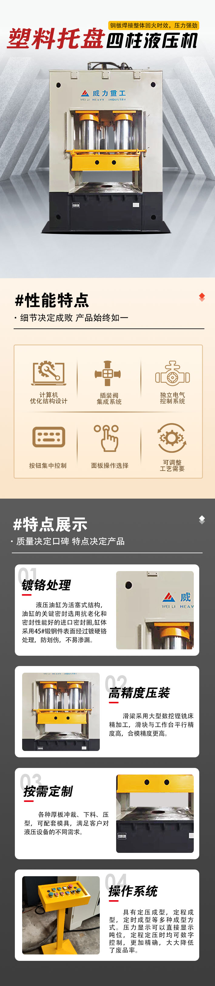 【產(chǎn)品描述】:塑料托盤成型液壓機是一種專門用于生產(chǎn)塑料托盤的設(shè)備。它采用液壓系統(tǒng),通過將熔化的塑料注入模具中,然后施加高壓力進行成型,最終得到塑料托盤產(chǎn)品。這種機器具有高效、精準、穩(wěn)定的特點,能夠生產(chǎn)出高質(zhì)量的塑料托盤。 塑料托盤成型液壓機在物流、倉儲、包裝等行業(yè)中有著廣泛的應用。塑料托盤是一種常用的物流包裝工具,可以用于存放、運輸和堆放貨物,提高